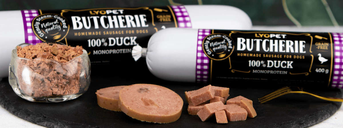 Butcherie Duck sausage / kachní salám pro psy 400g