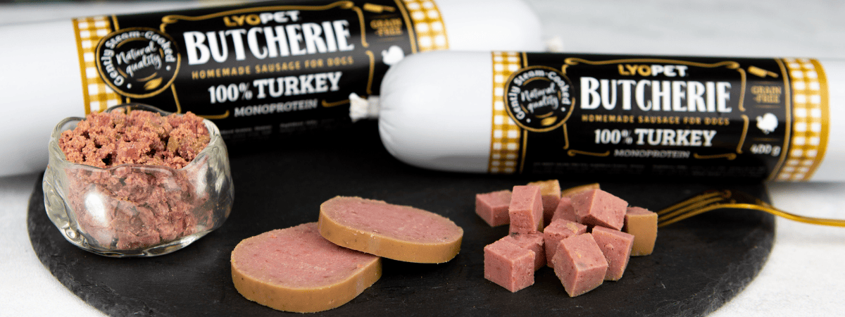 Butcherie Turkey sausage / krůtí salám pro psy 400g