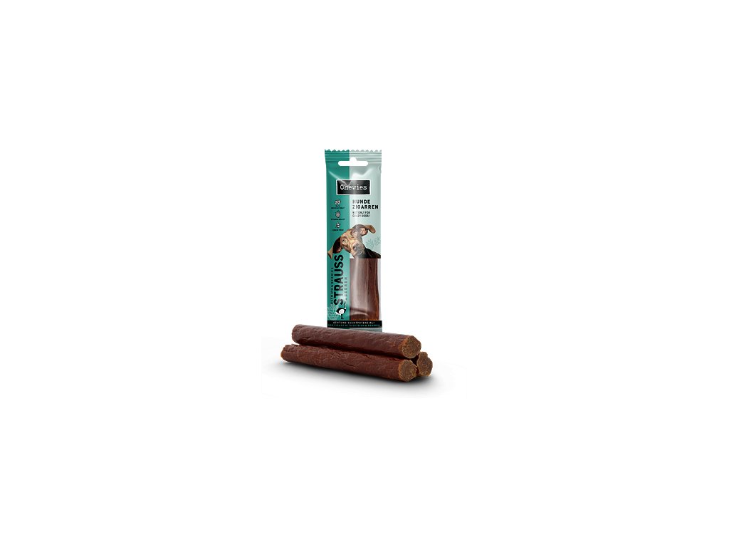 Chewies Hundezigarren Pštrosí salámky s malinami a rybízem 75 g