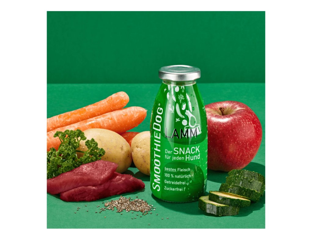 Máte doma citlivé psí bříško, líného gaučáka nebo hubnoucího tlusťocha? Smoothie s nízkokalorickým a snadno stravitelným jehněčím masem je jasná volba! Než se dostala jehněčí svalovina do uzavíratelné lahve, proháněla se na rodinné farmě ve volném chovu. Ve SmoothieDog přihodili ještě zeleninu, ovoce, superpotraviny a bylinky speciálně pro pejsky. I tyto suroviny mají 100% potravinářskou kvalitu, takže klidně ochutnejte. Není divu, že tohle všechno dohromady nadchne jak rozpustilá štěňata, tak psí seniory!