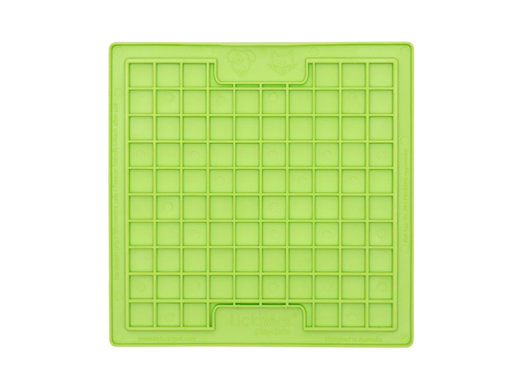 Podložka Lickimat Playdate má přihrádky ve tvaru čtverců. Doporučujeme pro kašovité a měkké jídlo, jako je konzerva, měkké kousky masa, jogurt nebo arašídové máslo.