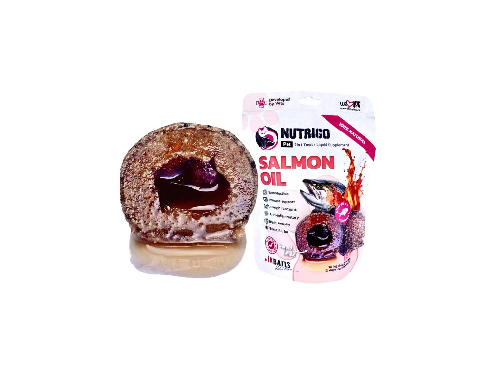 První a jedinečný doplněk výživy svého druhu ve světě, který kombinuje superpotraviny s tekutou účinnou látkou uvnitř chutného pamlsku. NUTRIGO Salmon oil obsahuje ten nejkvalitnější norský olej z lososů, který je skvělým zdrojem Omega 3 a Omega 6. Díky vnitřní aplikaci čistého lososového oleje přímo do pamlsku jsme znásobili využitelnost účinných látek pro podporu imunity, srdce, lesklé srsti, lepšího vstřebání vitamínů, reprodukce nebo potlačení zánětů. NUTRIGO Salmon oil je chutný doplněk stravy, který bude váš parťák přijímat s radostí, skvěle si pochutná, a přitom využije výhody přírodního rybího oleje.
