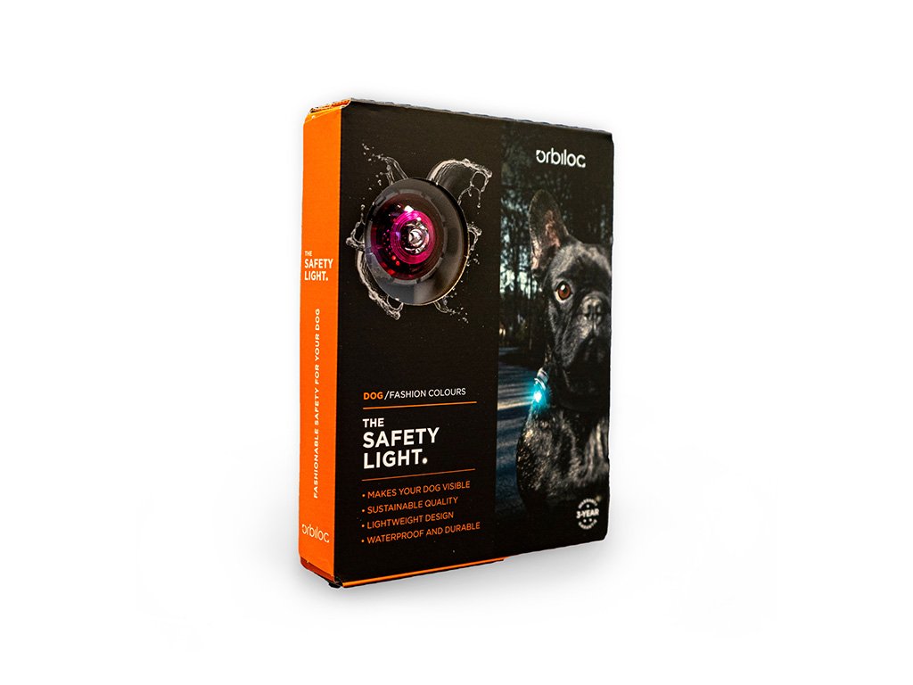 Orbiloc Safety Dog Light. High-tech LED světlo pro psy na obojek nebo postroj. Vyrobeno v Dánsku.