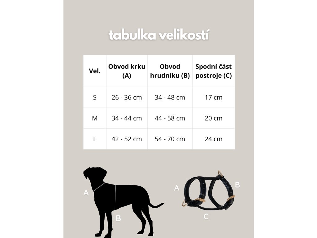 Detailnější velikostní tabulku i s praktickou ukázkou kde měřit naleznete ve fotogalerii. Obvod hrudníku = předníma packama.