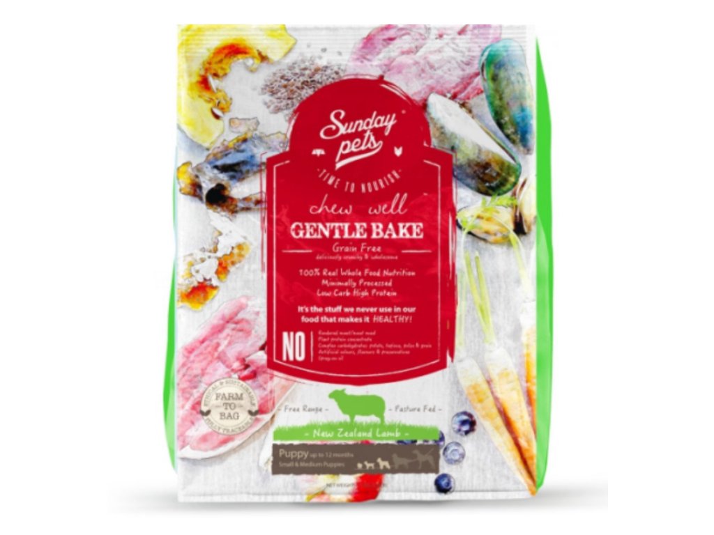 Krmivo pro štěňata malých a středních plemen Gentle Baked Grain Free™ Lamb značky Sunday Pets® bylo vytvořeno tak, aby splňovalo nutriční hodnoty krmiva pro dospělé psy stanovené Americkou asociací pro kontrolu krmiv (AAFCO, Association of American Feed Control Officials). Vyrobeno z čerstvých a přírodních ingrediencí – barva a tvar se proto mohou lišit.